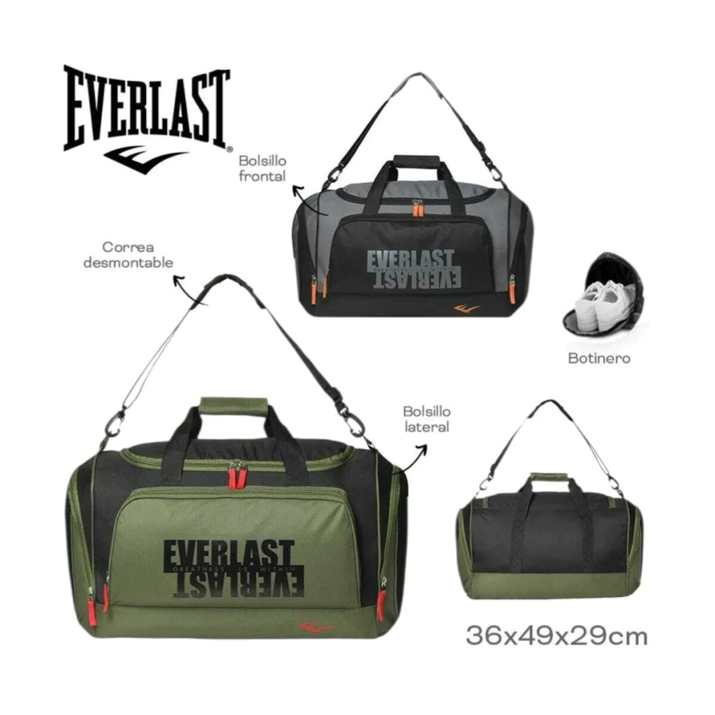 Ideal para entrenamientos, deportes o viajes cortos, el Bolso Everlast combina practicidad, estilo y durabilidad. Confeccionado en material impermeable y reforzado, resiste el uso diario manteniendo tus pertenencias seguras y organizadas.